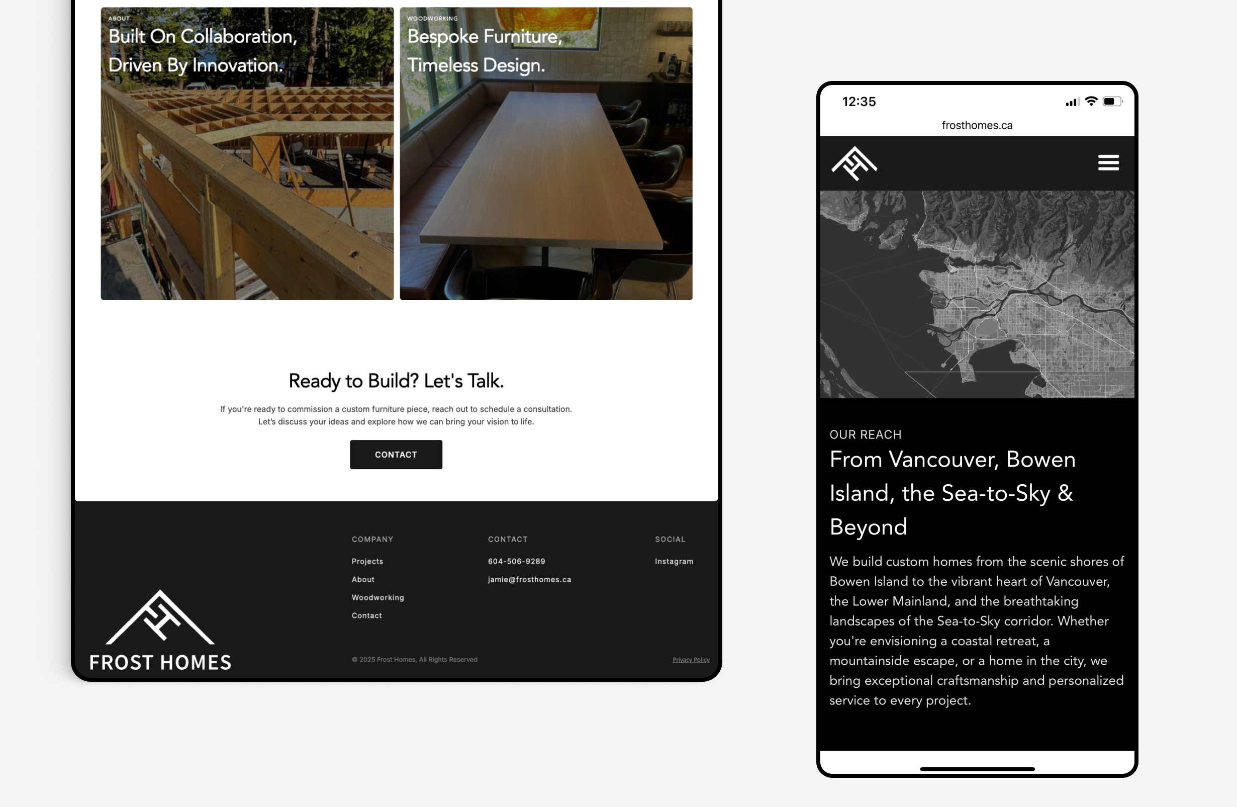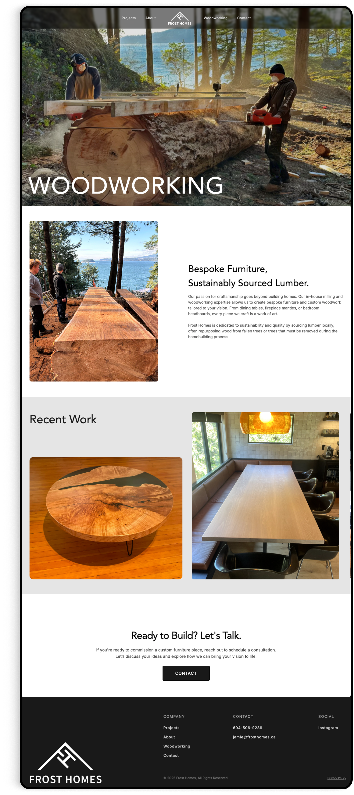 When Frost Homes first approached me, they had already built a reputation that most companies can only aspire to. For over four decades, the Frost family had been shaping Bowen Island, crafting custom homes with a level of care and transparency that made them a fixture in the community. They had word-of-mouth, a trusted name, a long track record, and a new generation stepping into leadership.